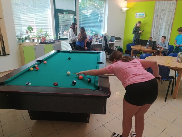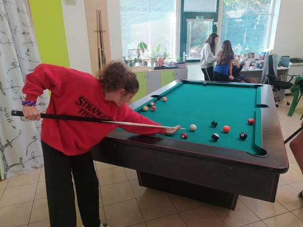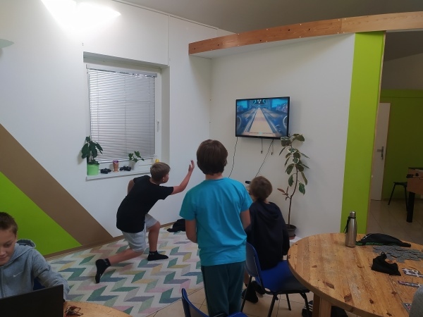 Druhý den ráno jsme začali bohatou snídaní, kterou nám přivezli jedni z rodičů. A když se všechny třídy začaly učit, vyšli jsme směrem k volnočasovému klubu Rébus. Zde jsme hráli různé stolní hry, šipky, kulečník, fotbálek nebo na X-boxu. Po návratu do školy jsme šli na oběd a poté jsme konečně vyrazili domů.