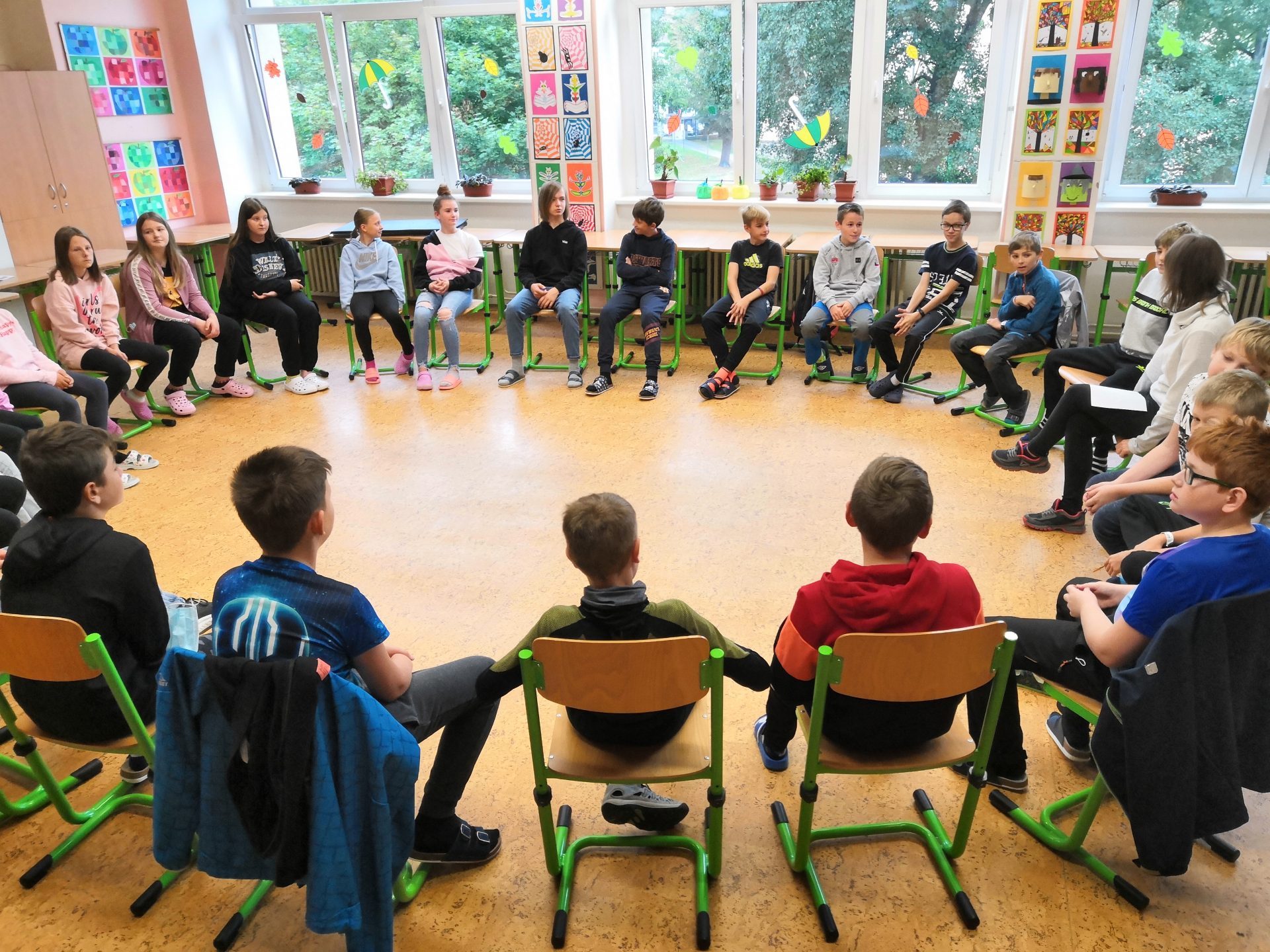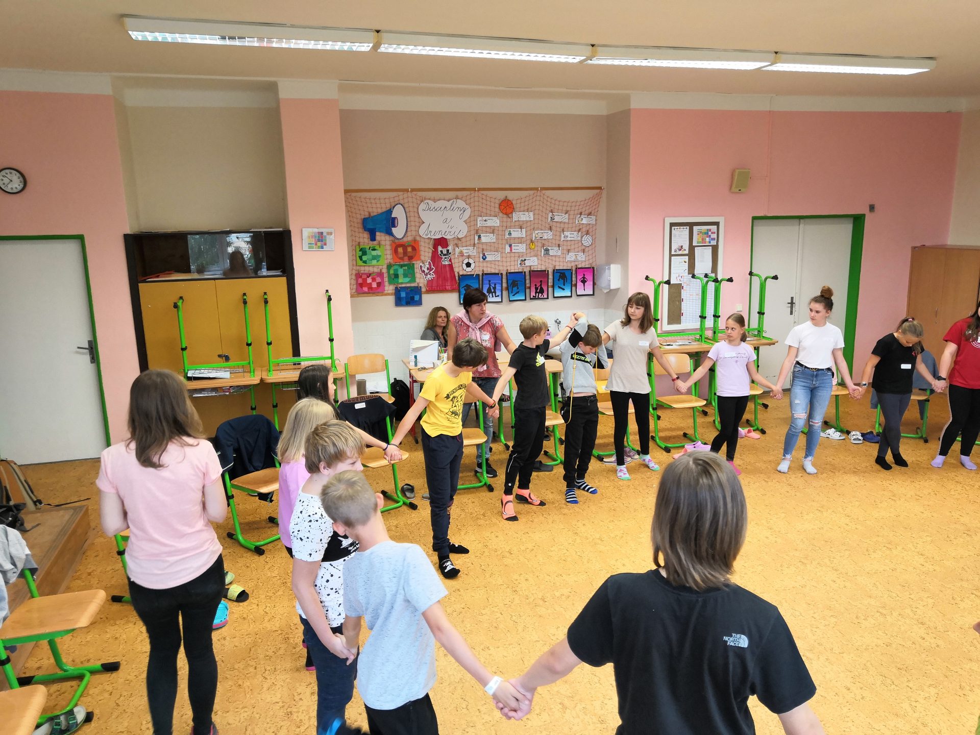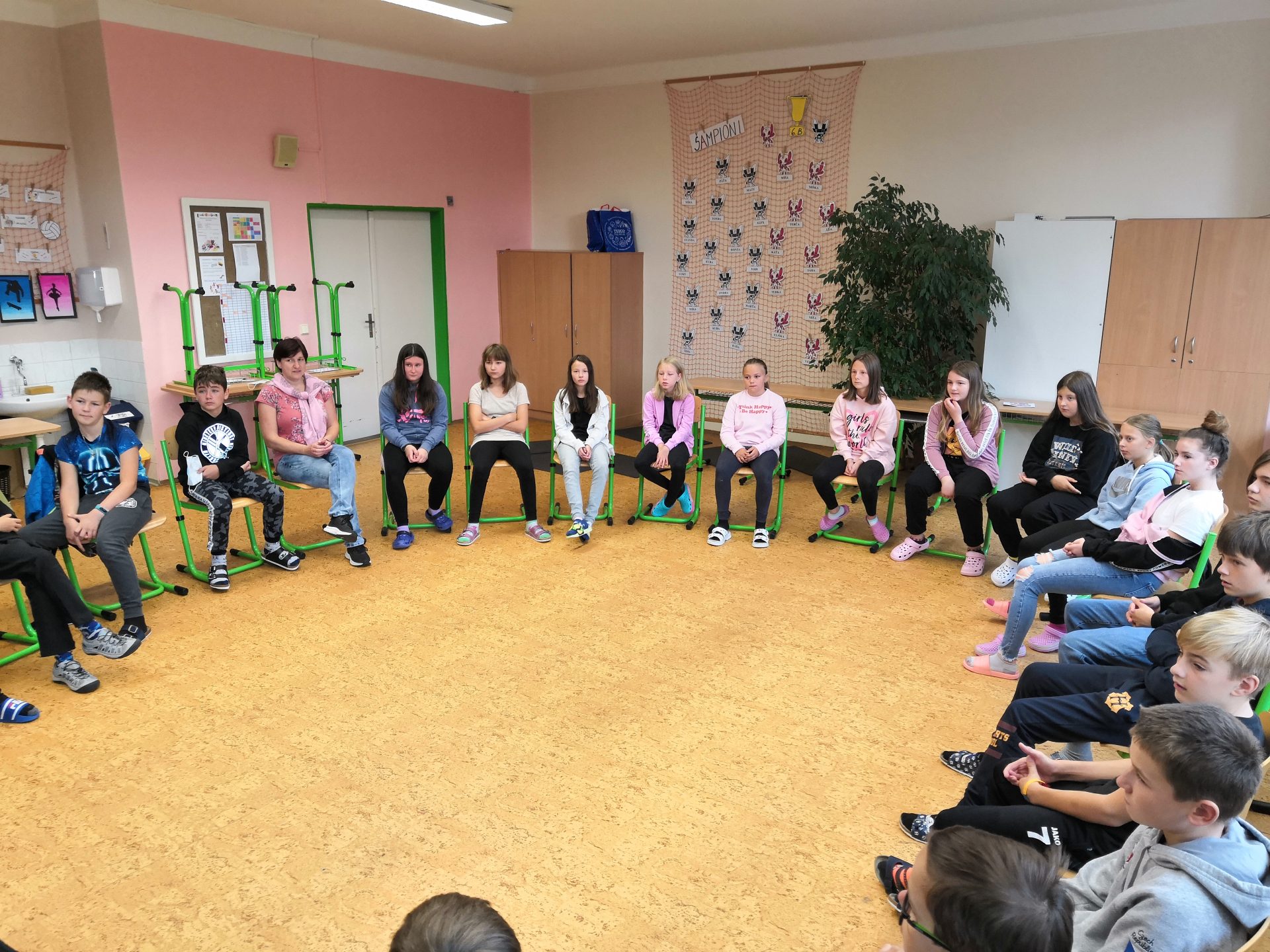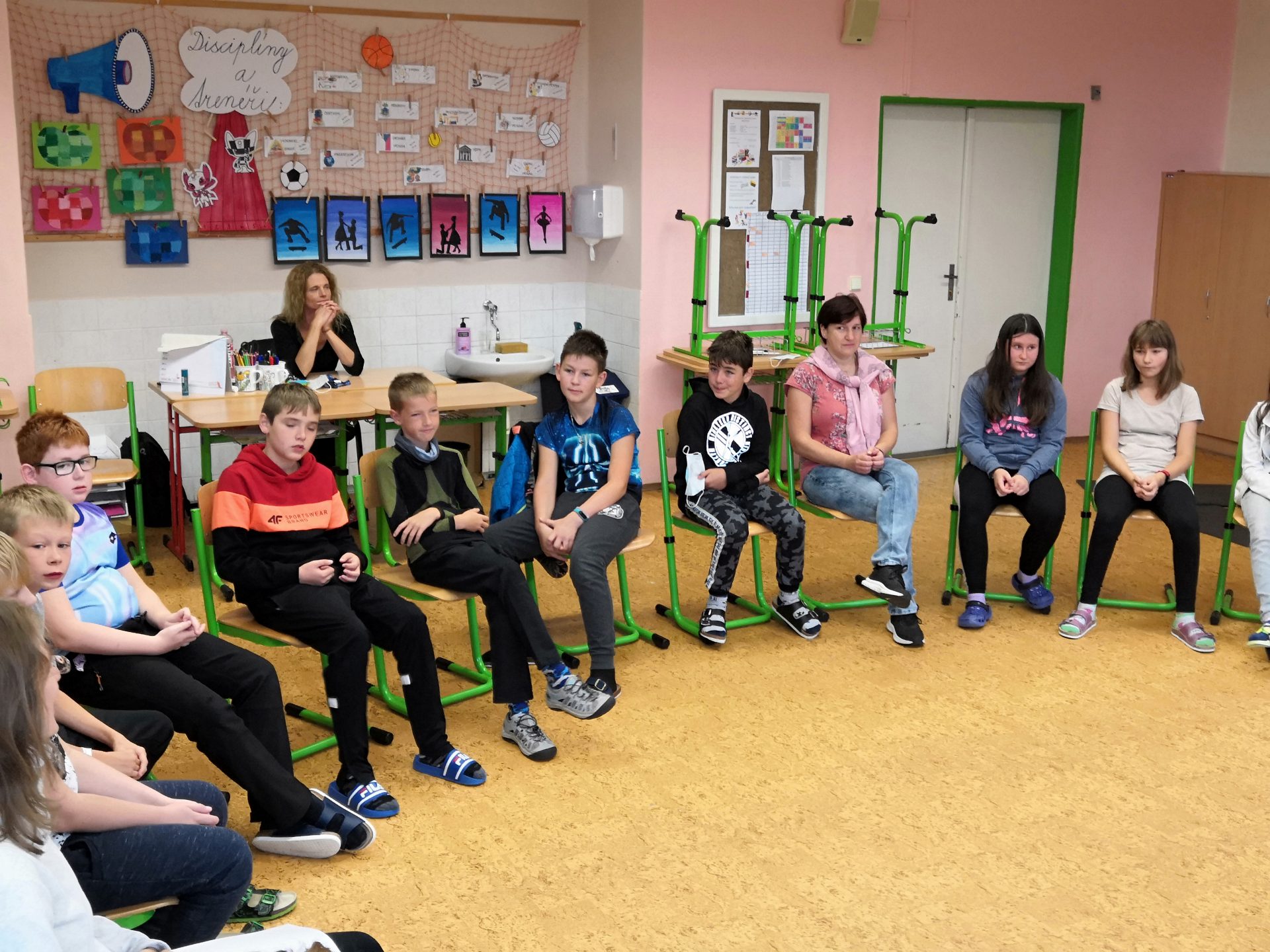 Během dopoledne jsme společně plnili různé úkoly a hráli hry – zaměřené na bližší seznámení s novými žáky a vytváření kladného klimatu ve třídě.