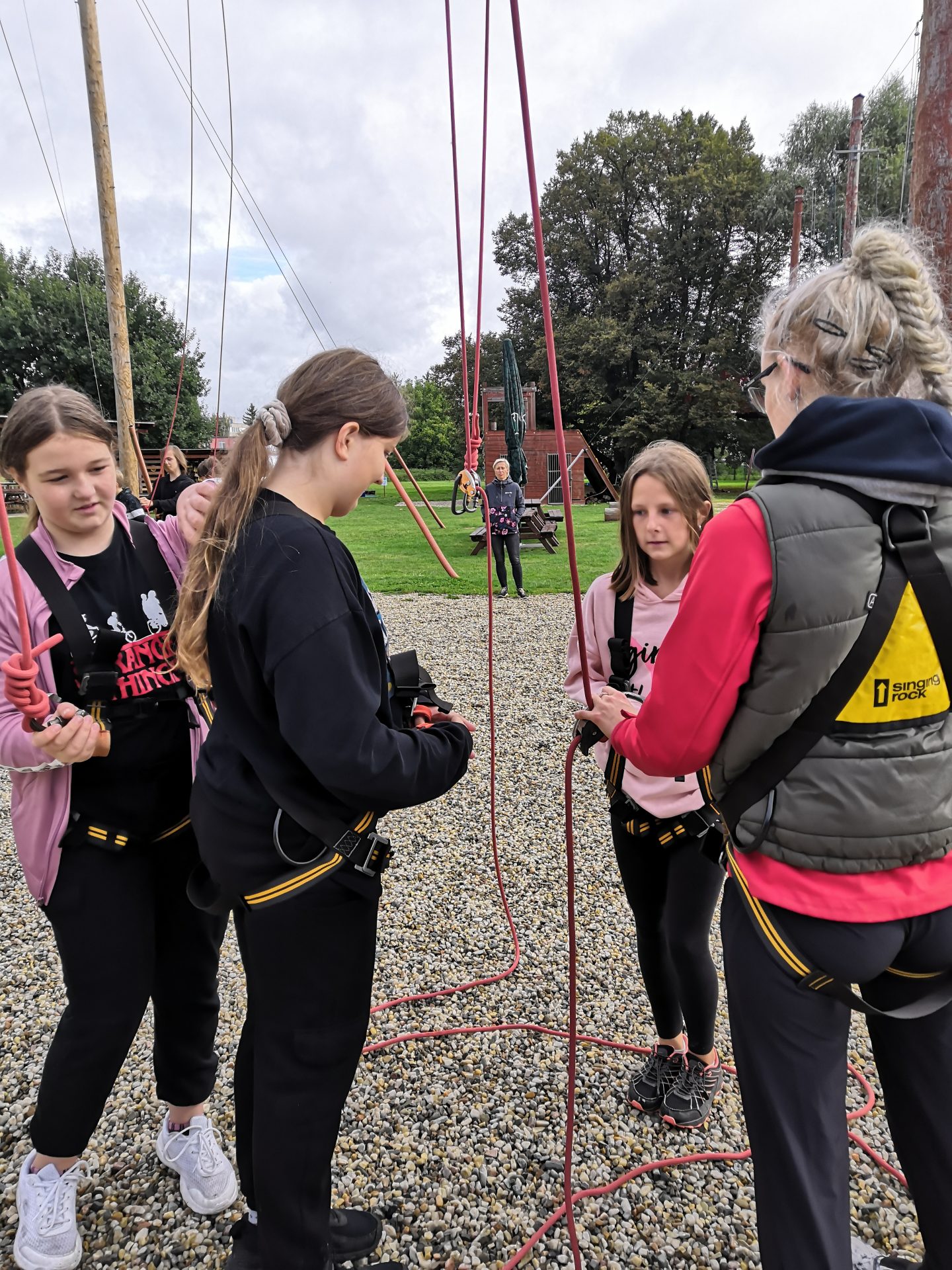 Zde jsme nejdříve plnili skupinové aktivity v rámci soutěží mezi jednotlivými družstvy. Poté jsme se již učili základy lezení, jištění a slaňování.