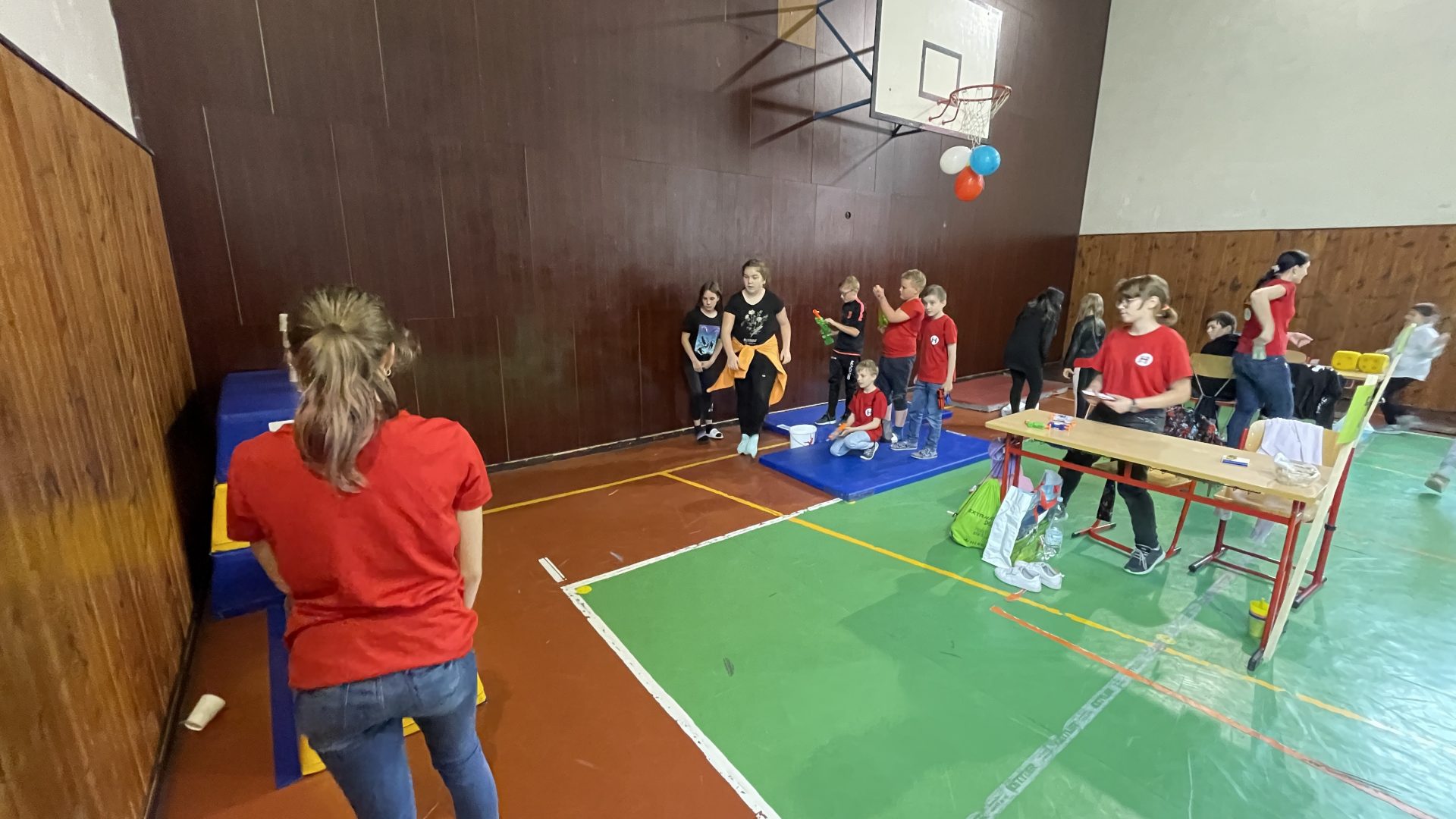 Na Den dětí nám zrušili hodinu, jinak bychom nestihli oběd. Ve 14:00 hod. byl začátek. Kája a Matyáš prodávali ve stánku, Matěj, Terka a Dalča pomáhali rozdávat lístečky u vchodu. Zbytek třídy se střídal podle časů na našem stanovišti, kde byli Nerf pistole – střelba na cíl.“