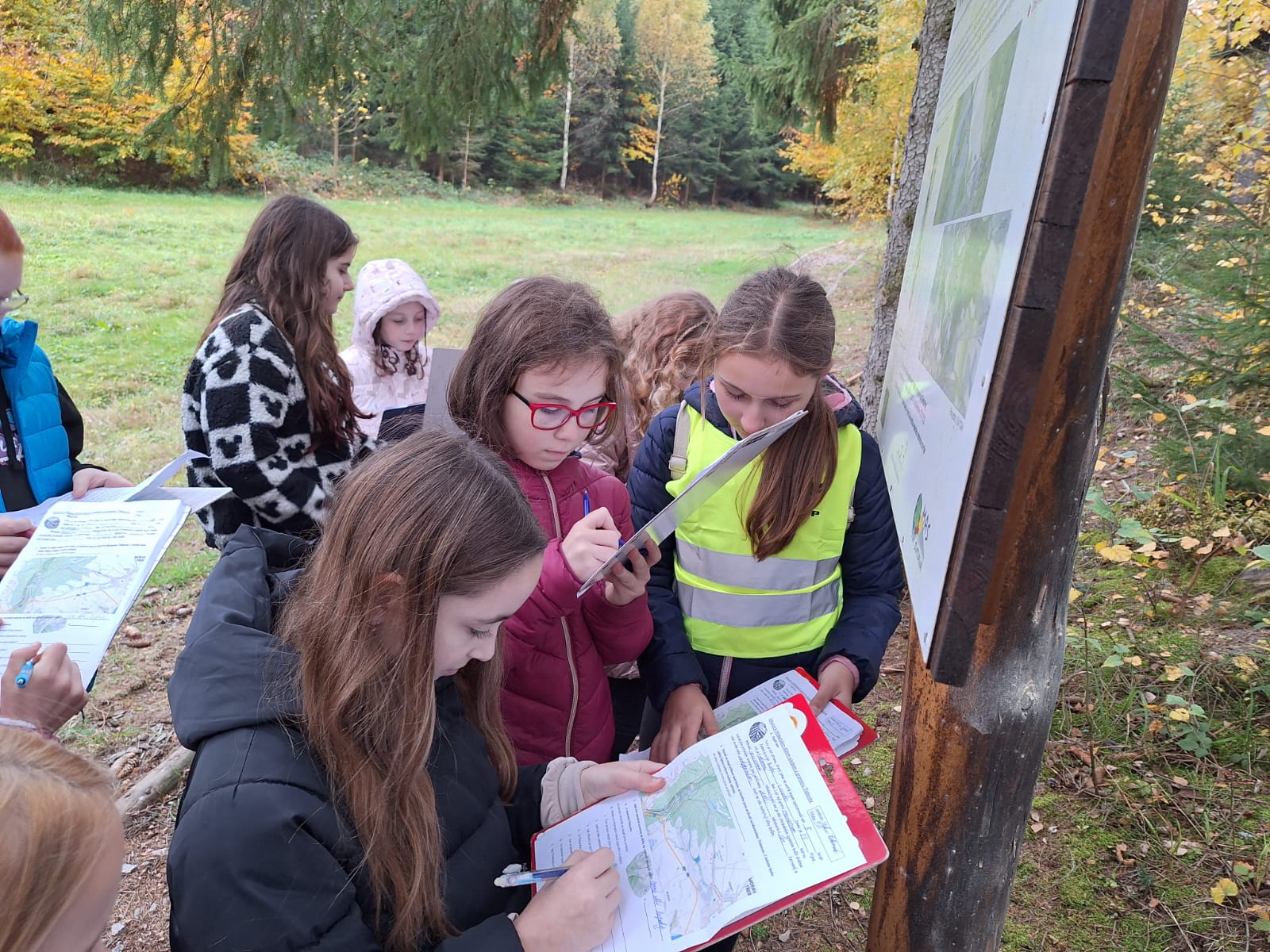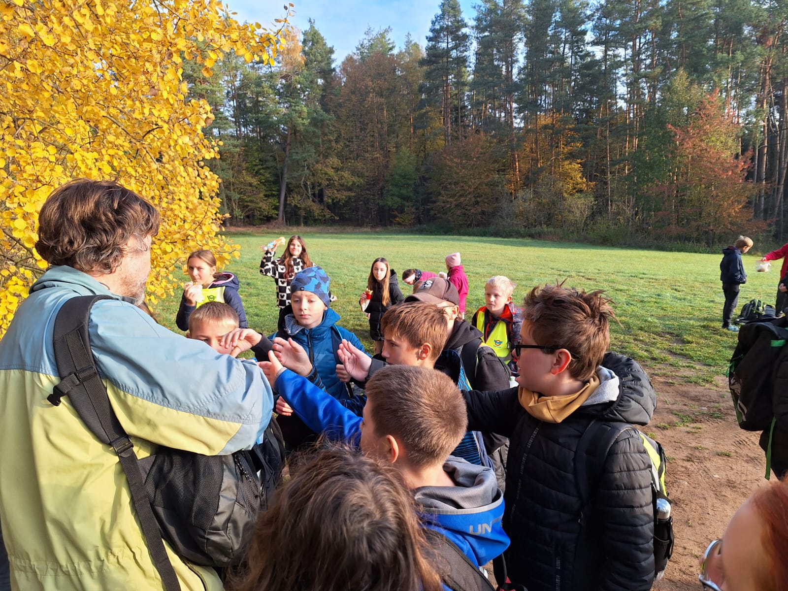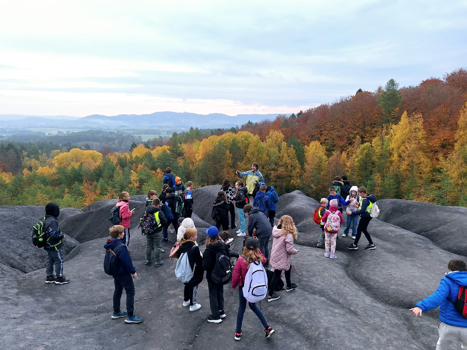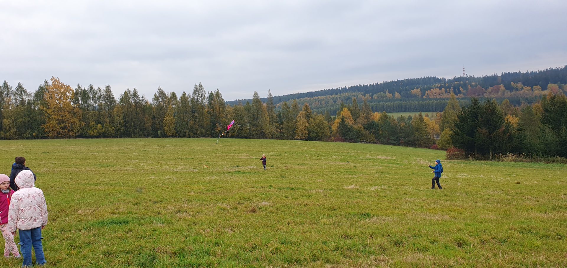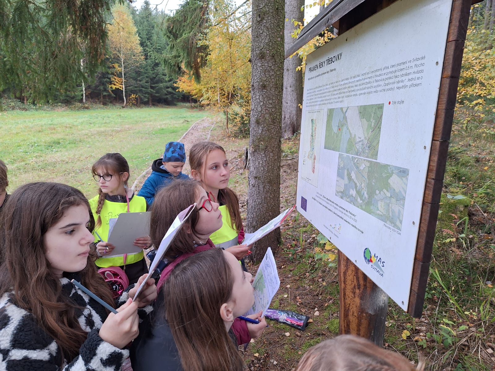 Jako američtí astronauti Neil Armstrong a Edwin Aldrin si chvíli připadaly děti z 5.B a 5.C, když zdolávaly výstup do prostoru bývalých dolů na Hřebči. Jejich dobrodružství bylo součástí exkurze po Hřebečských důlních stezkách a k prameni Třebovky. Vedle seznámení se s pramenem řeky protékajícím našim městem a přírodním bohatstvím Hřebečovského lesa spolu s tamní historií důlní těžby, byla pro mnohé největším zážitkem právě procházka Měsíční krajinou s krásným výhledem na Moravskou Třebovou. Na památku své výpravy zde páťáci zanechali vlaječku naší školy, se kterou se ještě před tím stihli vyfotit. V blízkosti pramene Třebovky zbyla i krátká chvilka na pouštění draků nebo stavění lesních domečků.