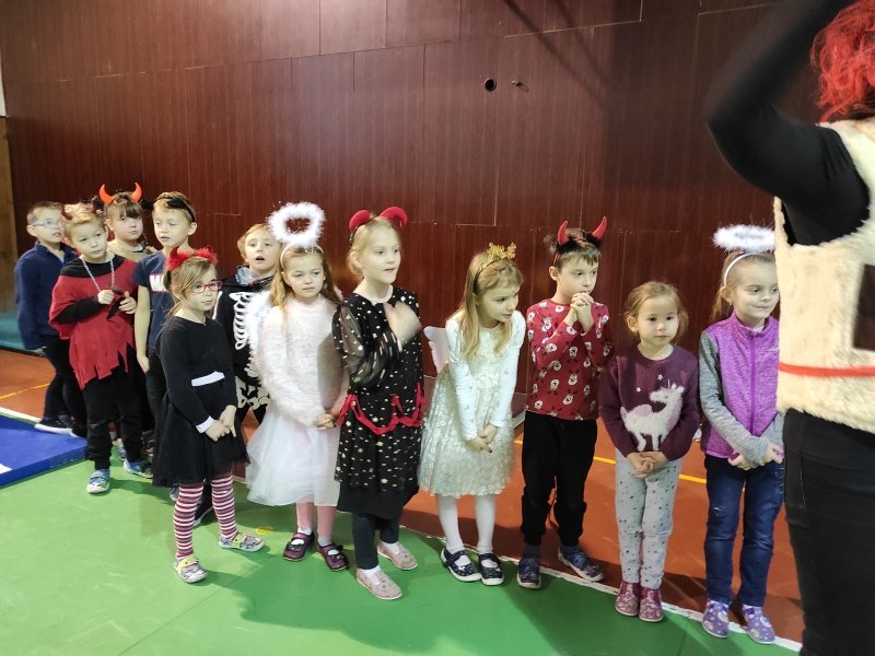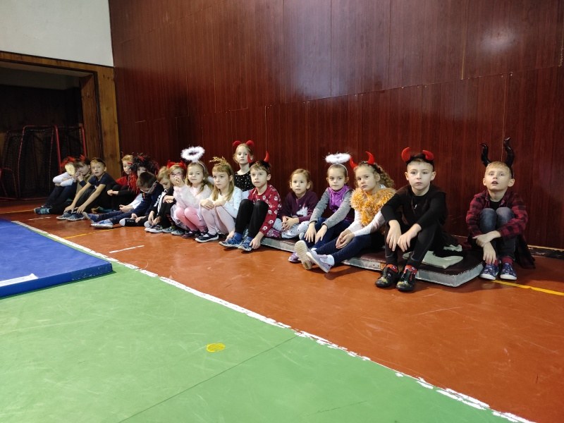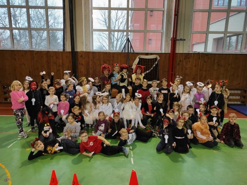 Další program tohoto dne se odehrával ve školní tělocvičně. Čertovská dráha se skládala z různých překážek, kterou musel zdolat každý prvňáček a na závěr dostal na památku papírovou medaili.