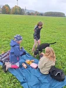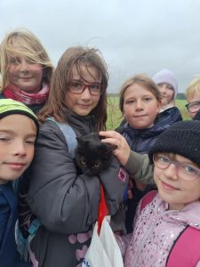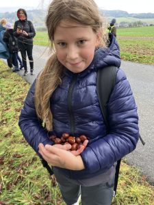 Naše třída se zapojila do projektu Pěšky do školy, který jsme spojili se sportovním dnem. Vydali jsme se na procházku ke Floriánovi, cestou jsme sbírali kaštany, pozorovali podzimní přírodu a potkali i několik zvířecích kamarádů – pejska a koťátko.