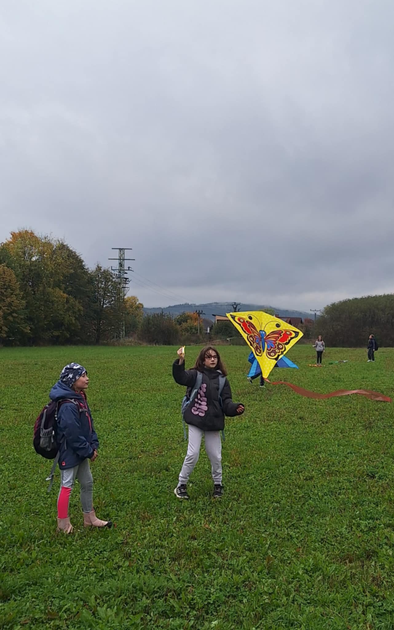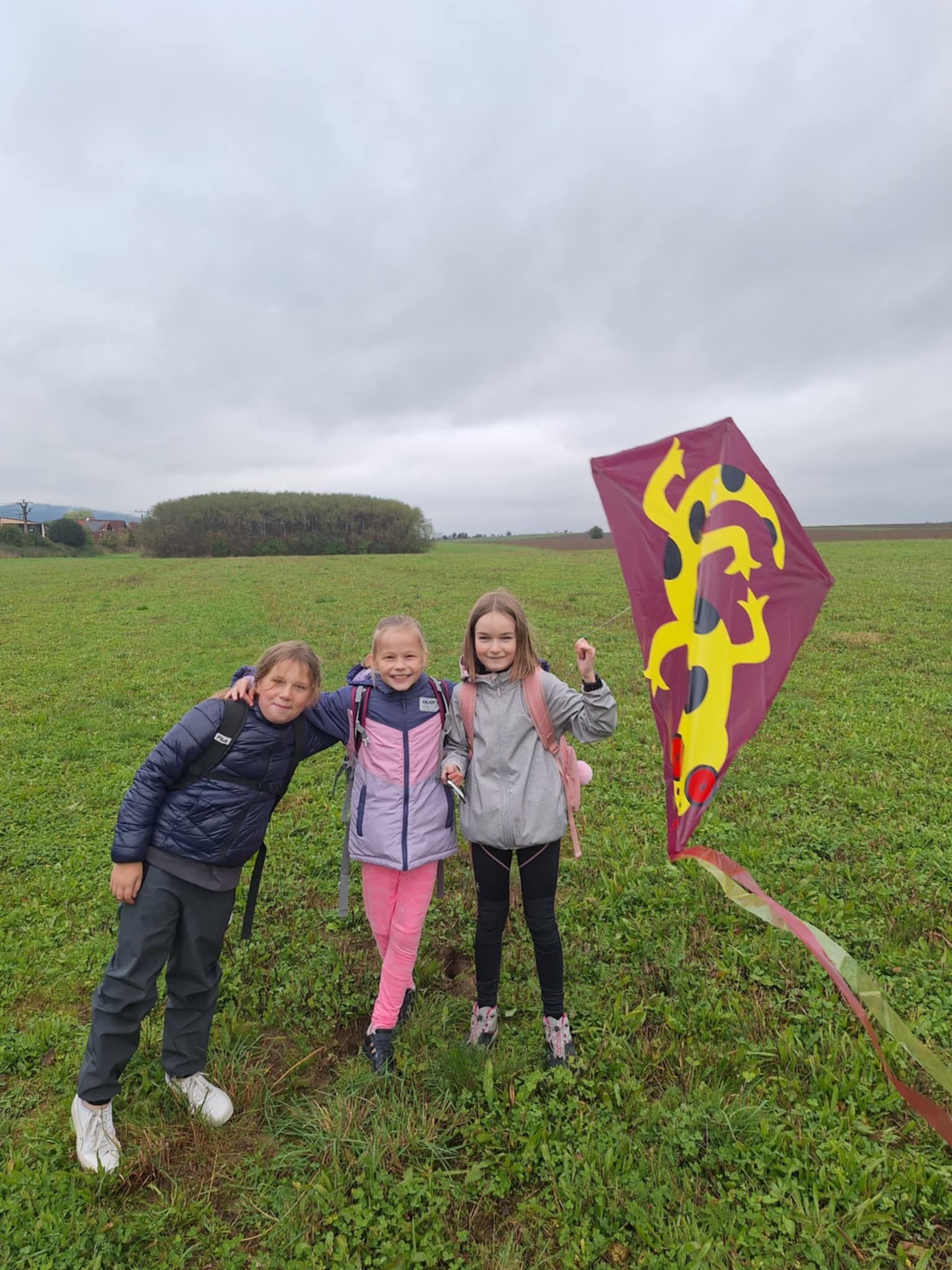 Ačkoli jsme k chatě Florián nakonec nedošli, protože tam právě probíhalo policejní cvičení, náladu nám to vůbec nezkazilo. Program jsme trochu změnili a o to víc jsme si užili pouštění draků. Vítr nám přál a nad loukou se vznášela spousta barevných křídel!