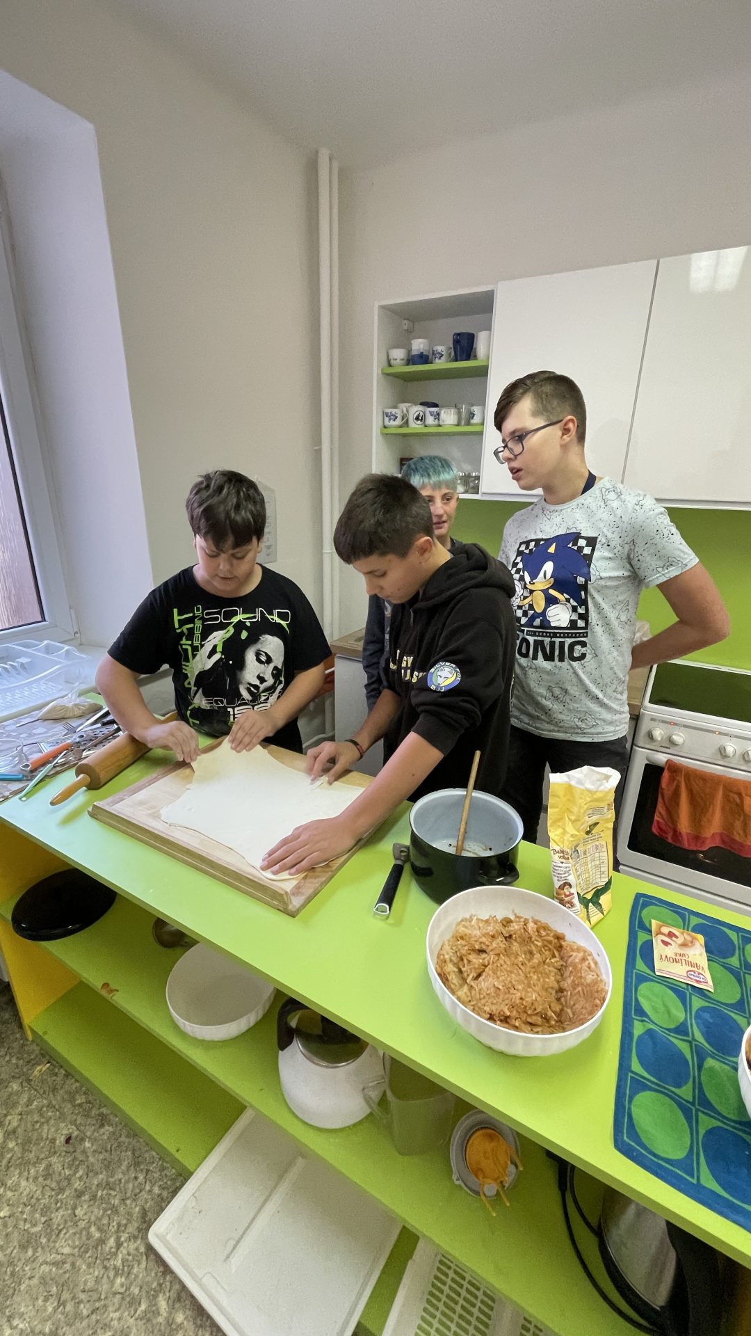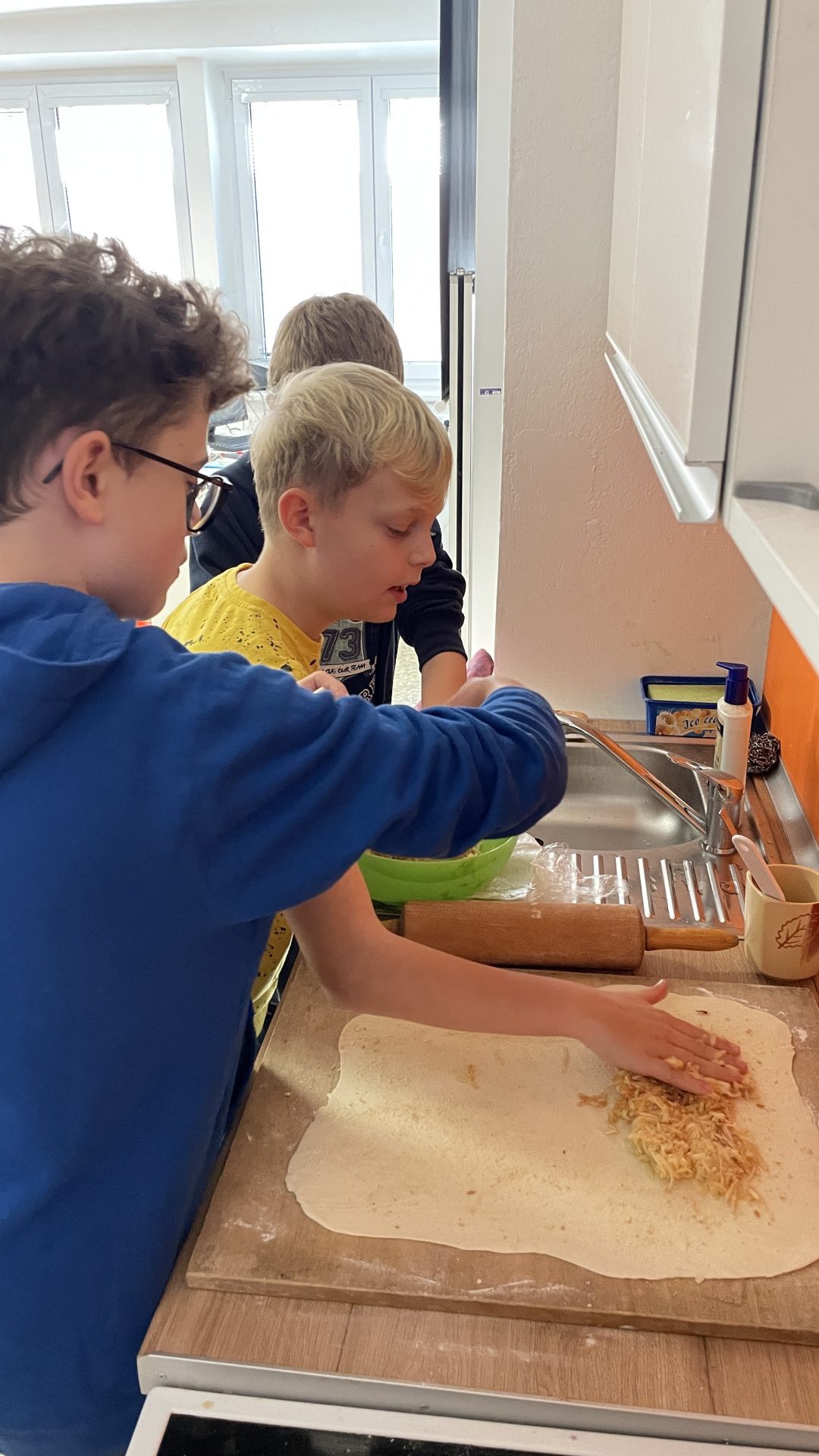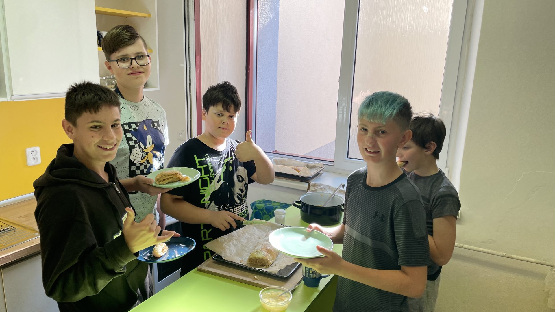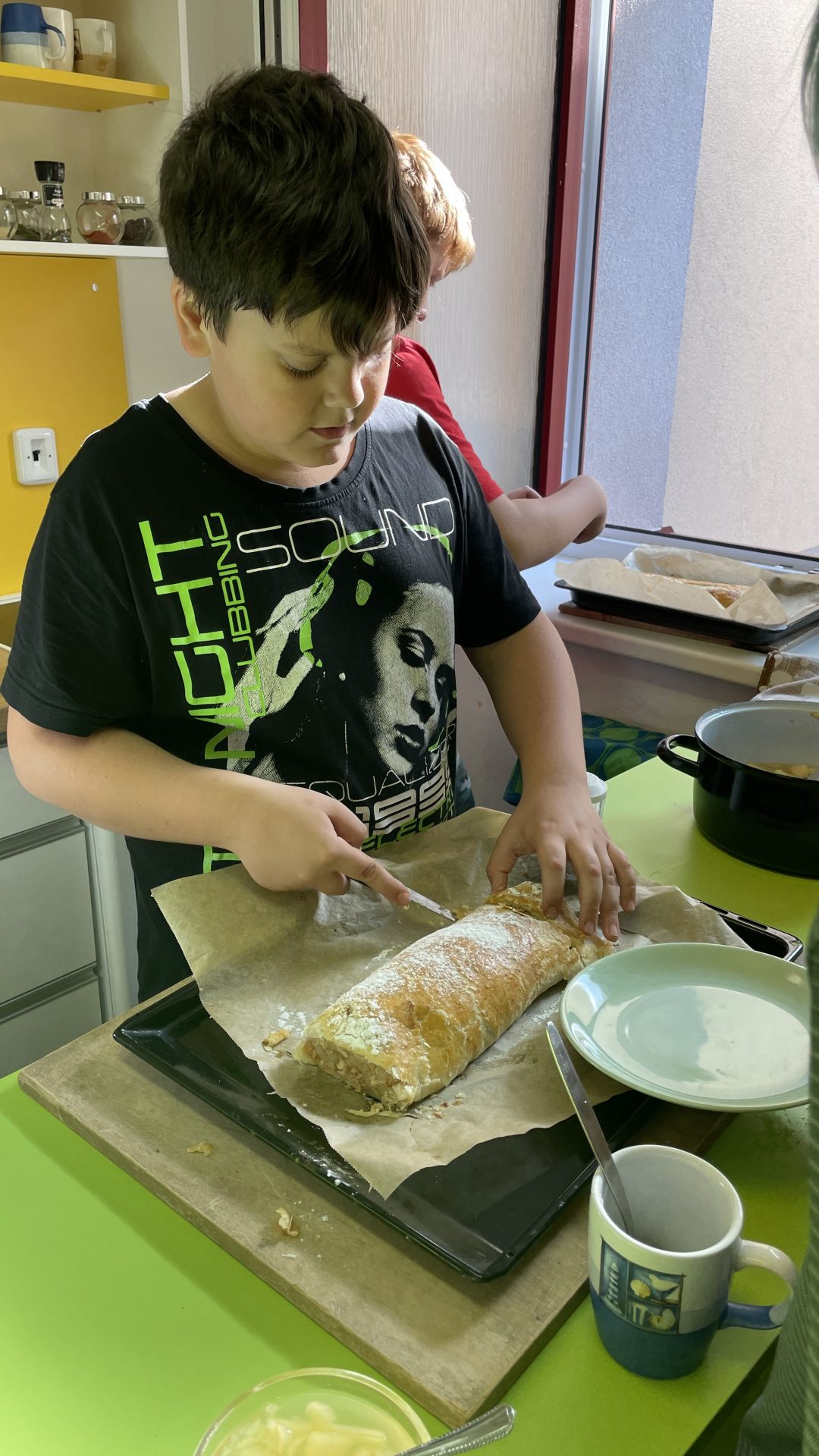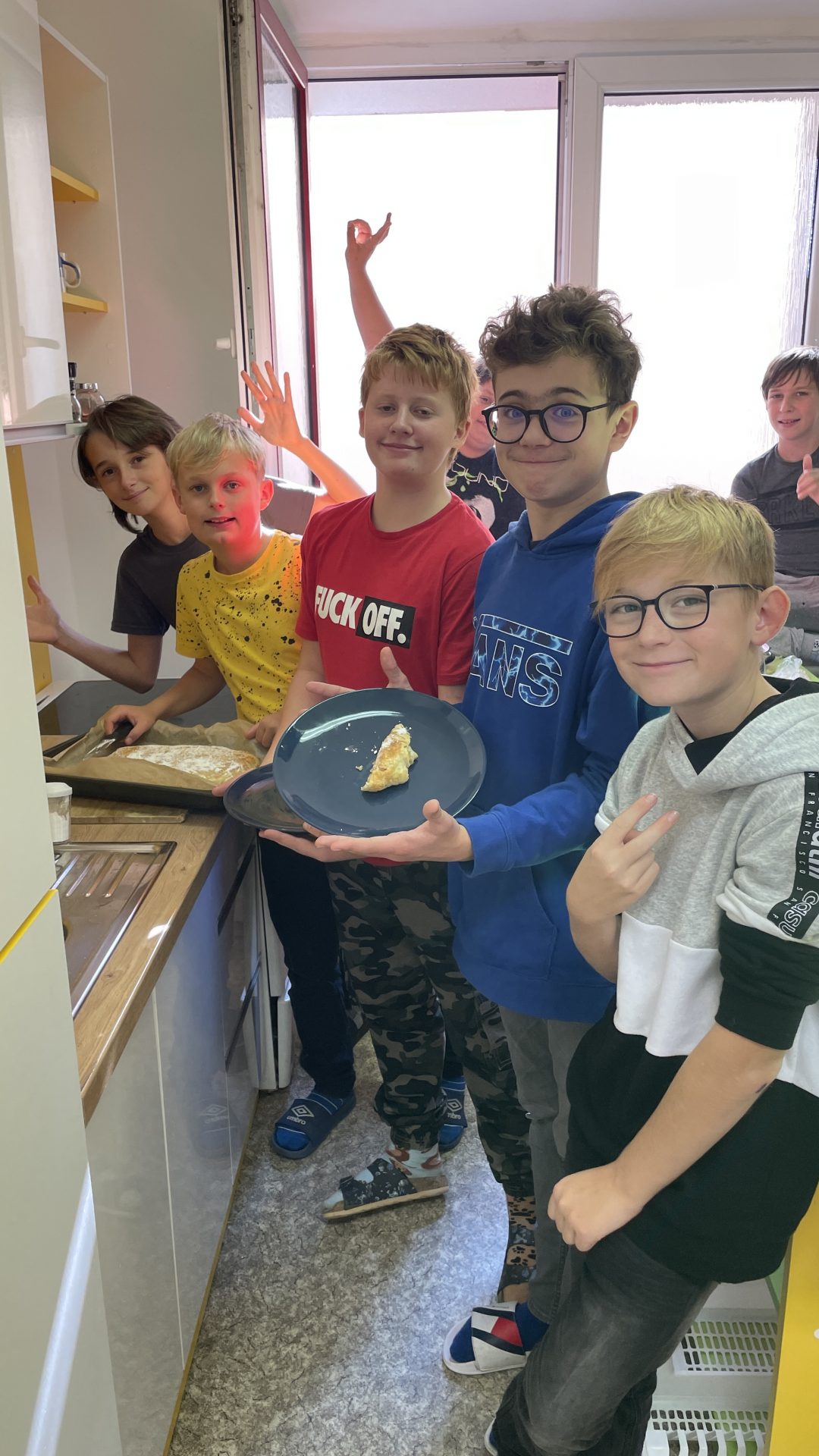 Sbírali jsme šípky a dělali z nich čerstvý šípkový čaj. Naposledy jsme z domácích jablek, které chlapci donesli, pekli štrůdl a vařili kompot. Oběma skupinám se štrůdl moc povedl, ačkoliv to pro někoho byla pekařská premiéra, a moc jsme si pochutnali. Jablečného kompotu bylo nakonec tolik, že jsme se podělili i s děvčaty. 🙂