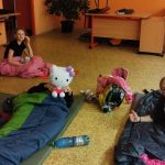 V rámci Týdne sportu jsme se rozhodli, že s dětmi opětovně přespat ve škole. Sešli jsme se v pondělí odpoledne, abychom se společně ve škole ubytovali a pak se přesunuli na vyhodnocení pondělních výsledků z Pekláku. Na náměstí jsme se nasytili každý po svém, poslechli část kulturního programu a pak se vrátili zpět do školy. Zde jsme si zatancovali, zahráli na schovávanou a užili si sami sebe navzájem.