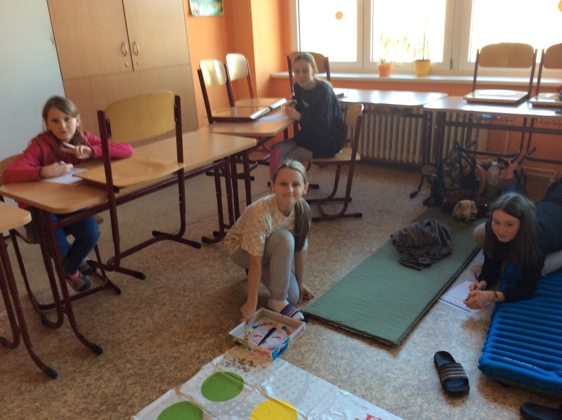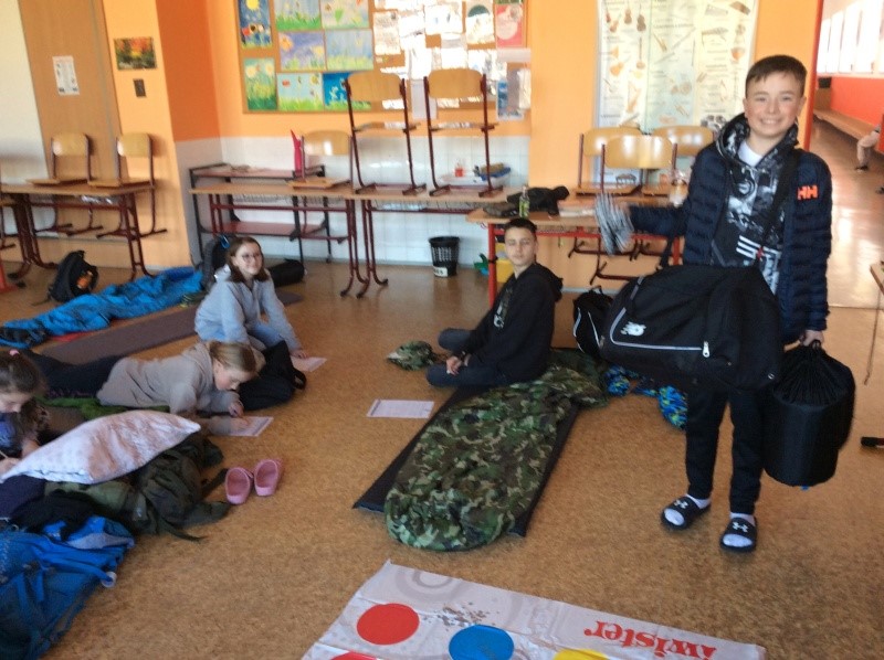 S žáky jsme se sešli ve škole z důvodu stmelování třídního kolektivu a zároveň také k řešení prevence šikany. V úvodu si každý z nich vyplnil anonymní dotazník týkající se třídního kolektivu a jeho fungování. Dále jsme zhlédli film Oběť šikany a Černá ovce z portálu JSNS, které jsme si společně důkladně rozebrali. Společně jsme si dali k večeři pizzu a poté jsme se ještě vydali do centra vyžití pro děti, kde si žáci užili spoustu legrace. I noc proběhla bez problémů a ráno jsme byli připraveni na školní akci Běh o velikonočního zajíčka.