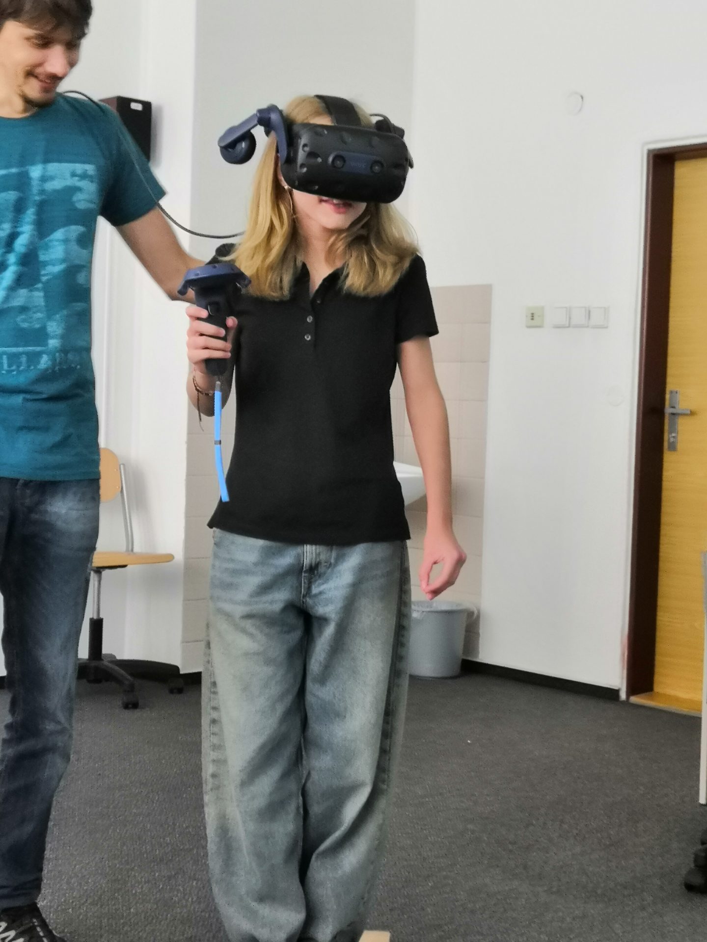 Ve 3 skupinách jsme si postupně vyzkoušeli virtuální realitu, trenažér řízení lokomotivy a programování vlastního robota.