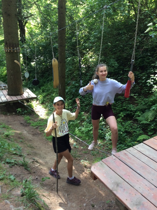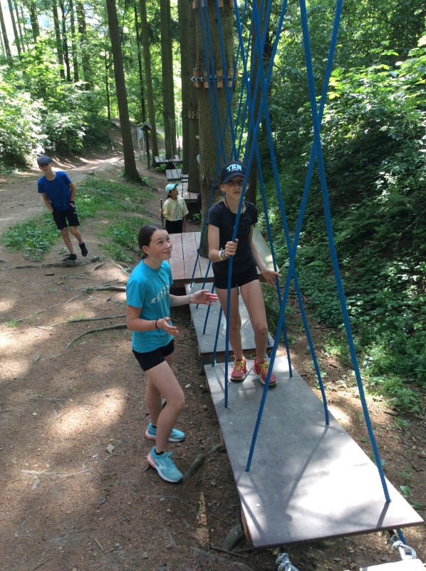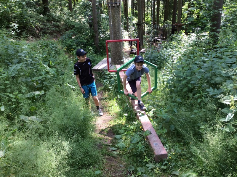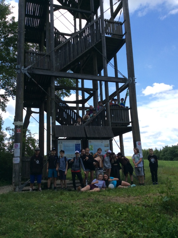 Lanový park si děti vyzkoušely mnohokrát, pod rozhlednou si zahrály různé hry a naše sportovně-turistické putování jsme završili pobytem na místním hřišti. Každý si zde našel takovou aktivitu, která mu osobně vyhovovala. Někteří hráli fotbal, další posilovali, běhali nebo obdivovali v okolí pasoucí se ovečky. Při zpáteční cestě a návratu do civilizace jsme si prohlédli náměstí, kde jsme se náležitě odměnili dobrou zmrzlinou.