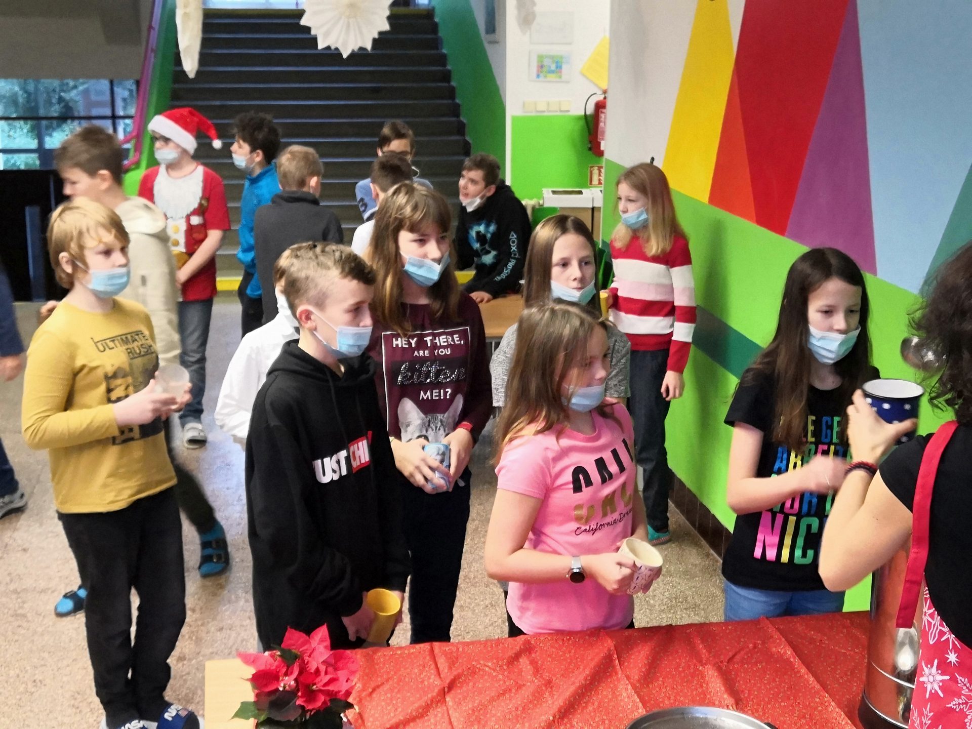 Naši první vánoční besídku na 2. stupni jsme zahájili ochutnávkou punče v hale u třídy. Jak moc jsme si „pošmákli“, poznáte z výrazů našich tváří:)