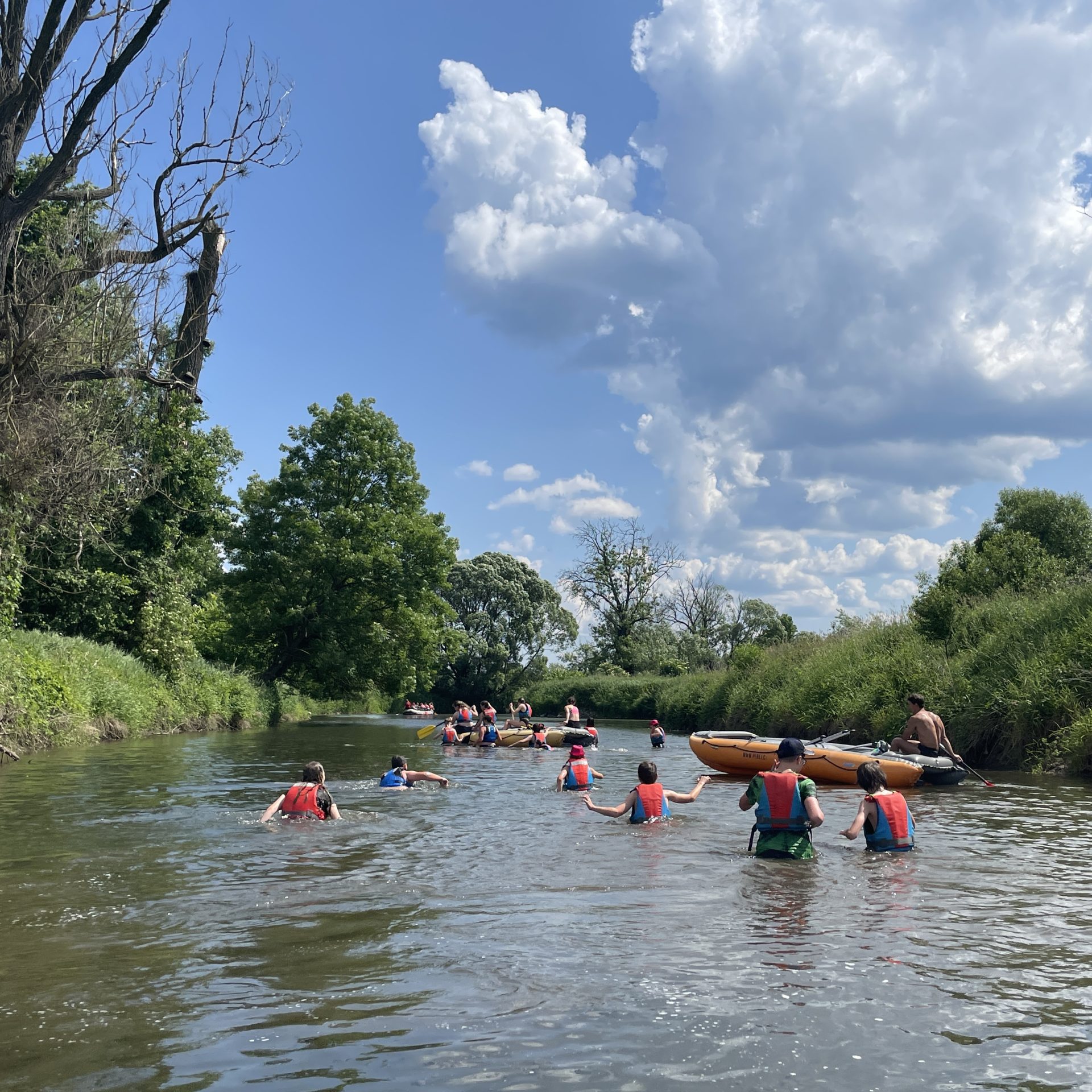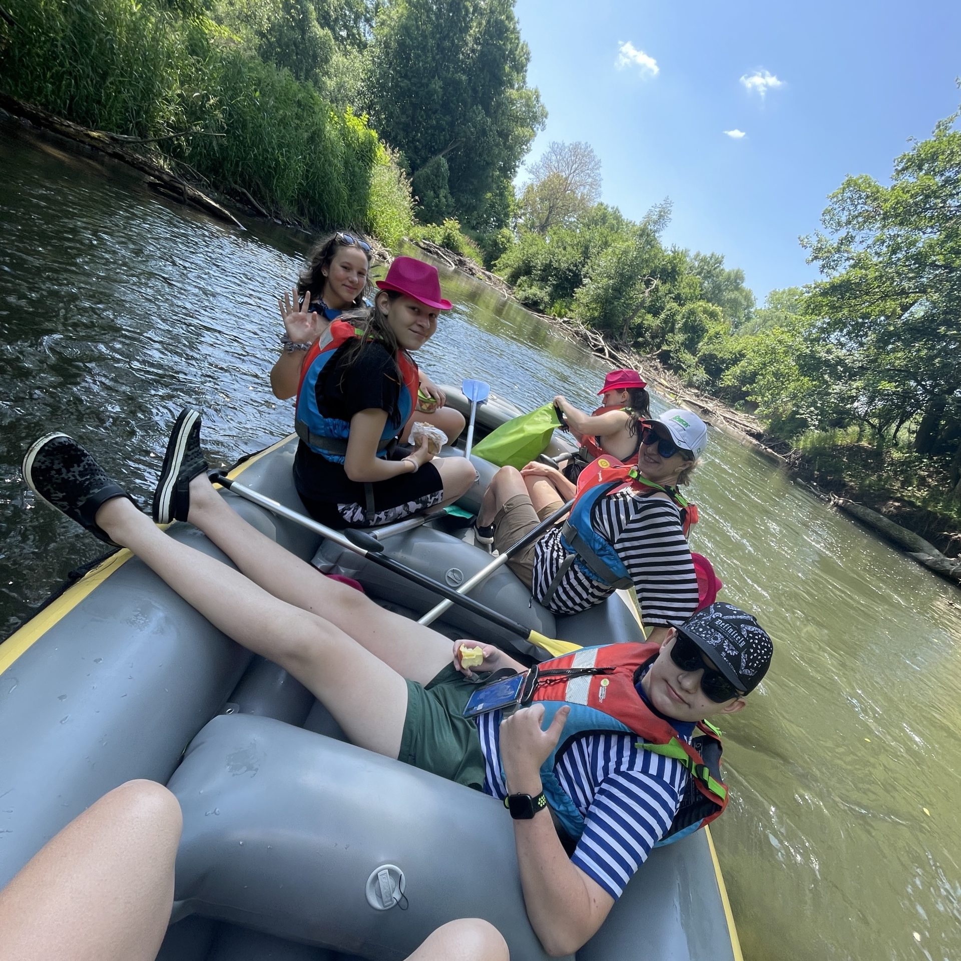 Dne 16.6.2023 jsme pádlovali na raftech po řece Moravě!! Po cestě vlakem a menší procházkou jsme dorazili na destinaci: Postřelmov! První polovina plavby trvala okolo 3h a dali jsme si oběd v baru Vila Háj. Nacházelo se tam hřiště, kde jsme převráceli houpací dřevěnou lodičku (bylo to mega zábavné). Poté jsme zase vypluli a po dalších 2h jsme dorazili na konečné místo: Tábor Moravičany. Tam jsme si zakoupili večeři/zmrzlinu a užili si srandu a chvíli volna v přírodě. Výlet skončil cestou vlakem zpátky do České Třebové.