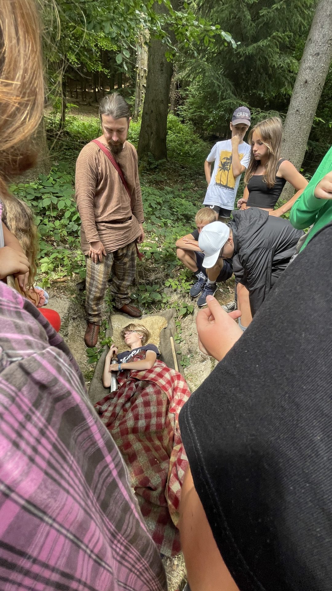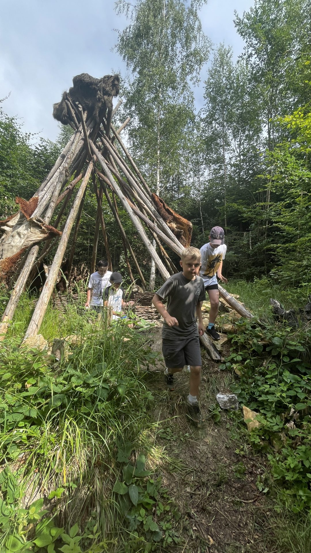 V úterý jsem se vydali na dějepisnou exkurzi do Křivolíku, kde se děti vrátily do doby kamenné, bronzové a železné a vyzkoušely si, jak vypadal život v pravěkých osadách. Při cestě nazpátek jsme se zchladili v Javorce, kam naskákali snad úplně všichni a stal se z toho nejlepší zážitek dne.