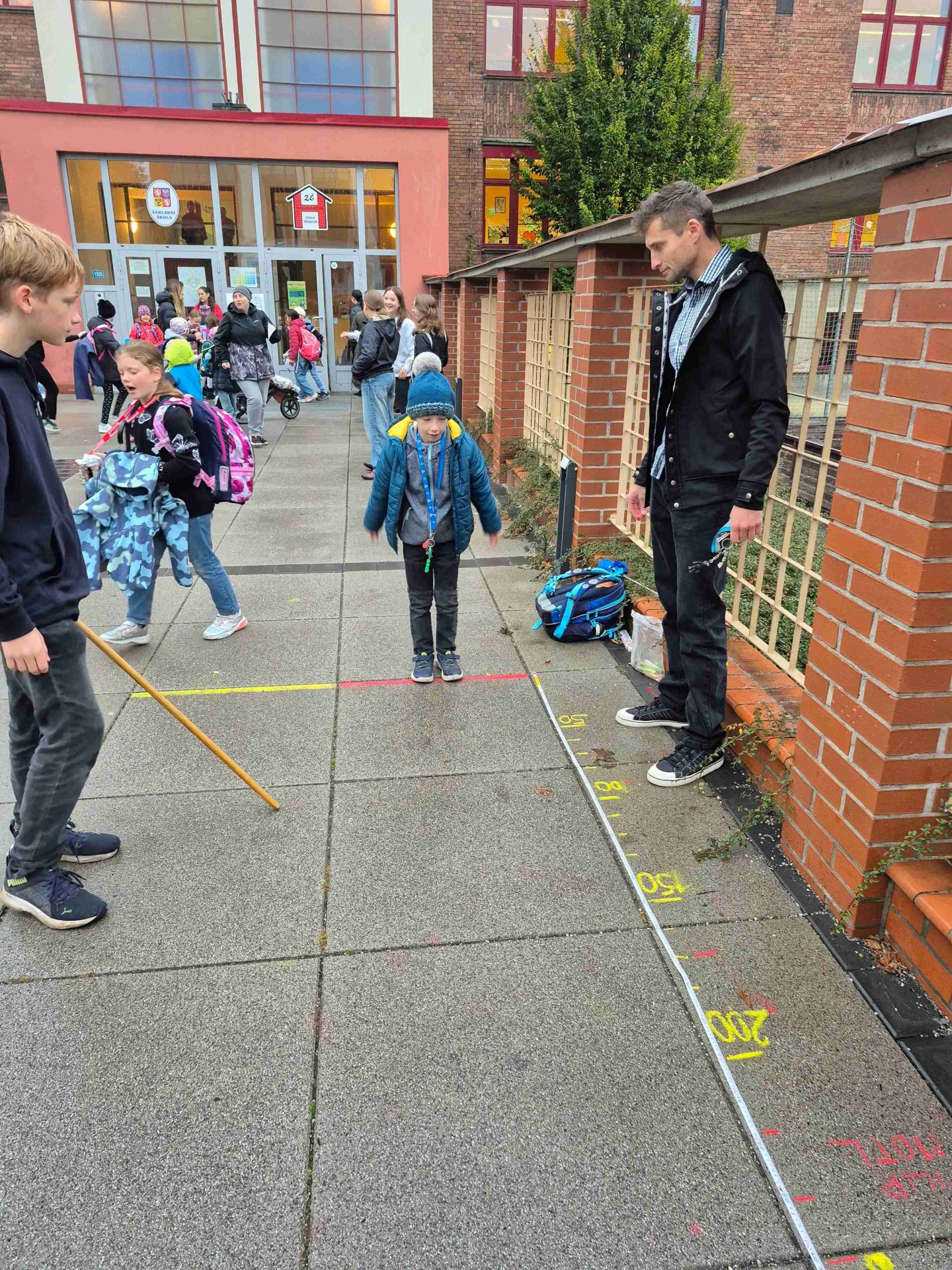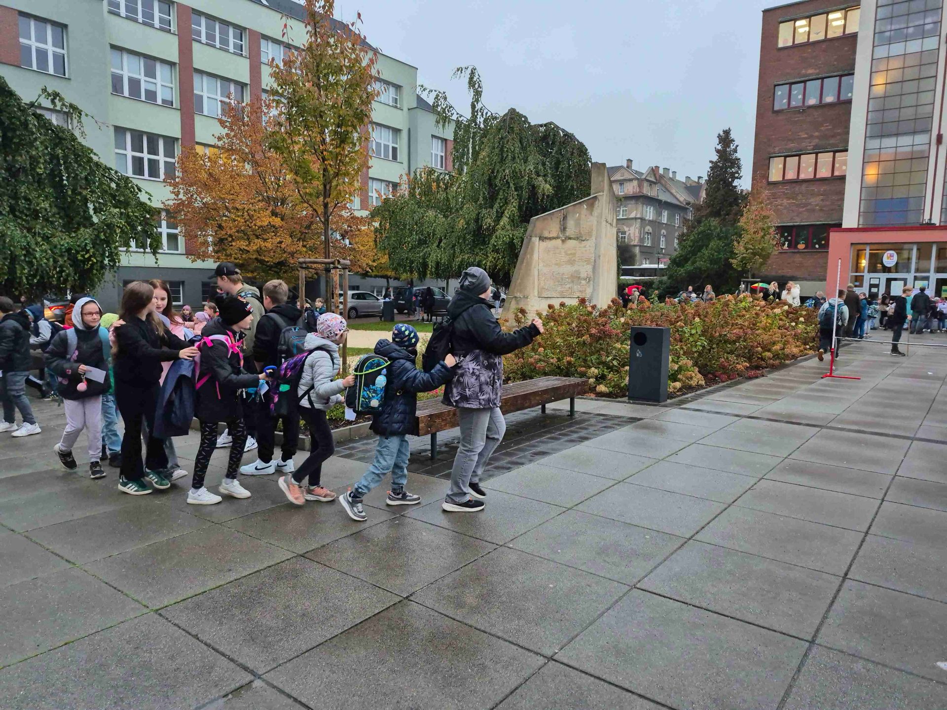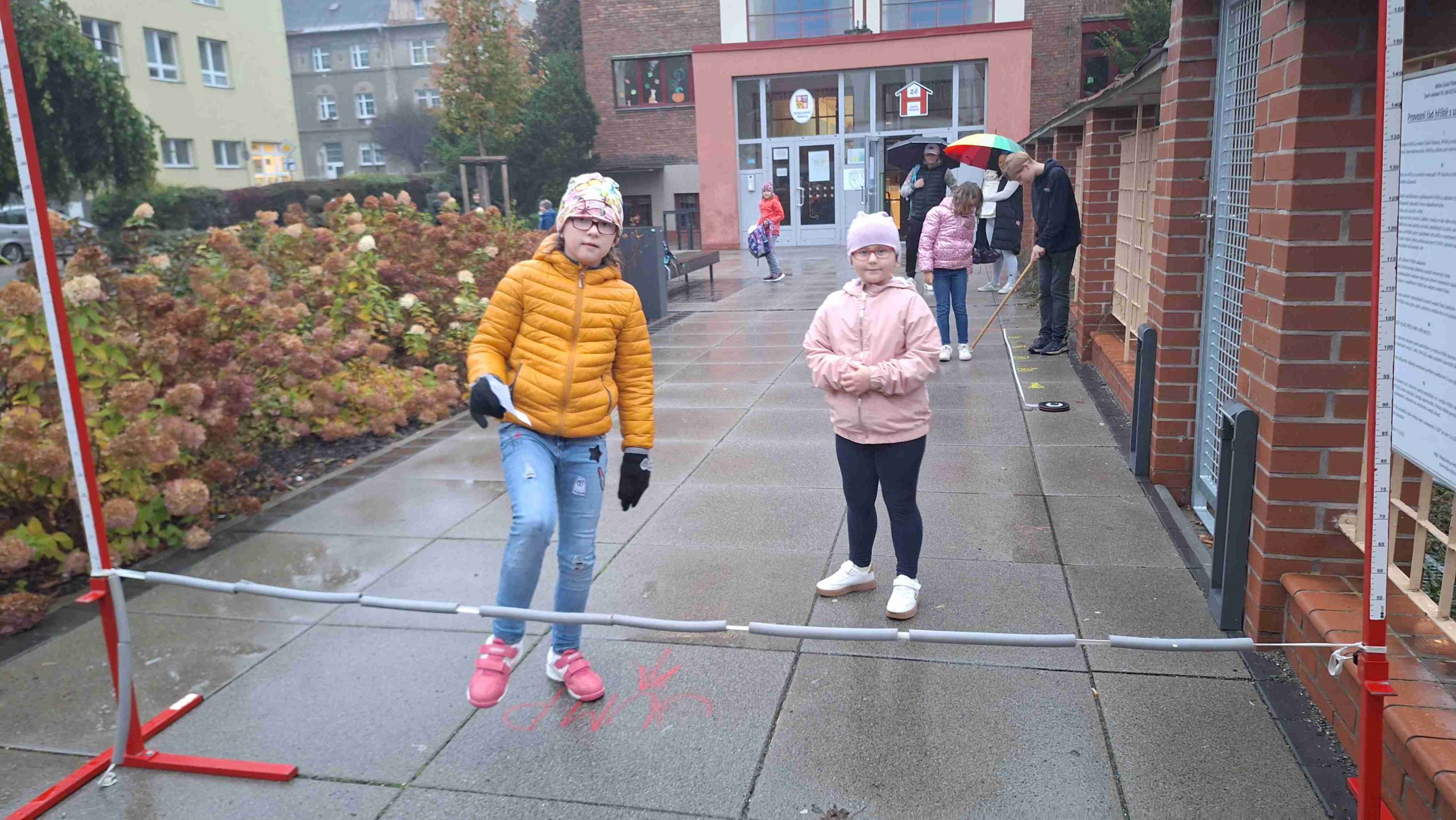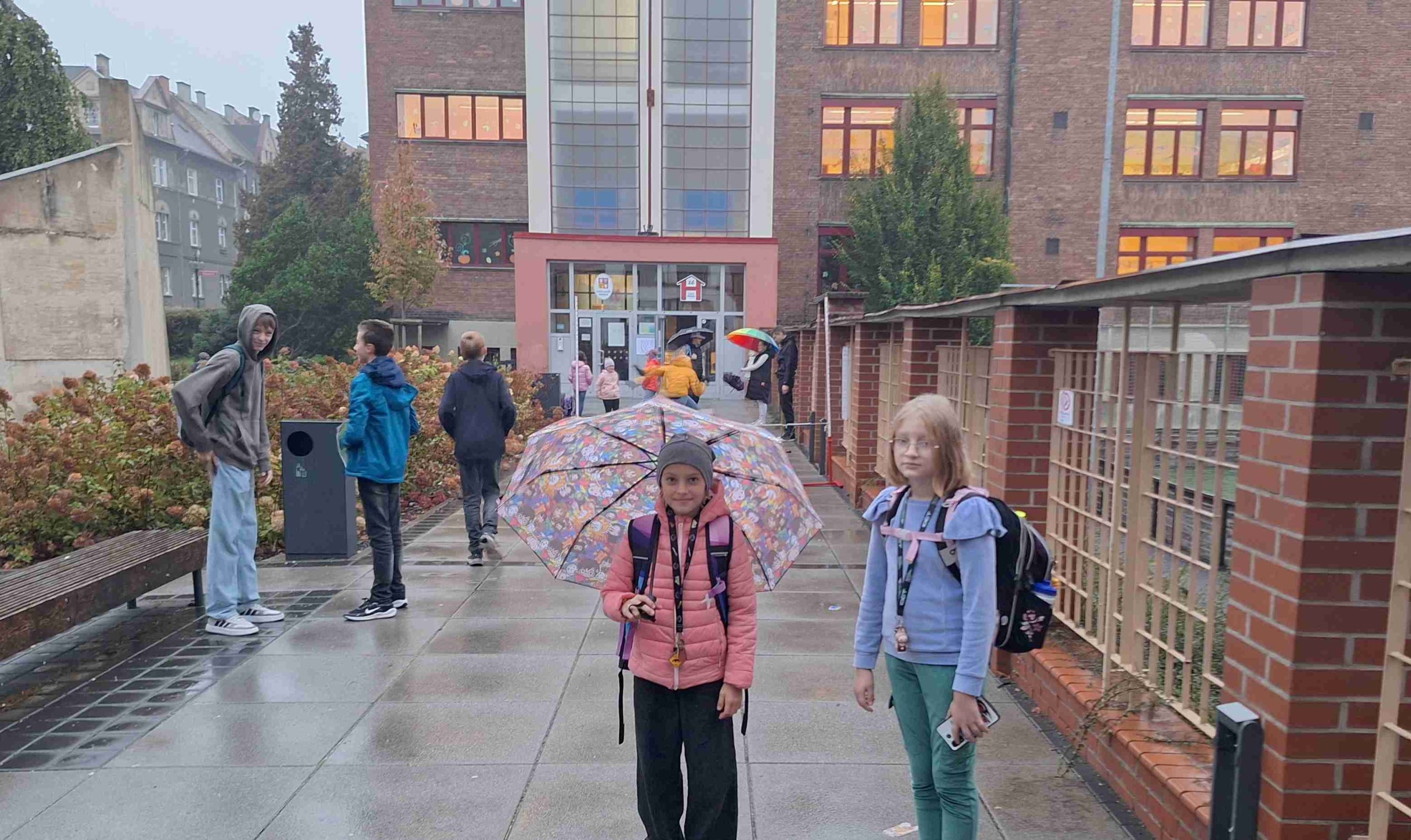 Dnes nám opět počasí příliš nepřálo, ale od naší akce PĚŠKY DO ŠKOLY nás to neodradilo. S dešníky i bez – jsme si dnešní ráno před školou pořádně užili. Zahráli jsme si i plánované PIŠKVORKY, i když trochu jinak, než jsme původně plánovali. Došlo i na skákání s 8.A. V dobré náladě jsme odjeli mašinkou vstříc dalšímu školnímu dobrodružství přímo do školy.