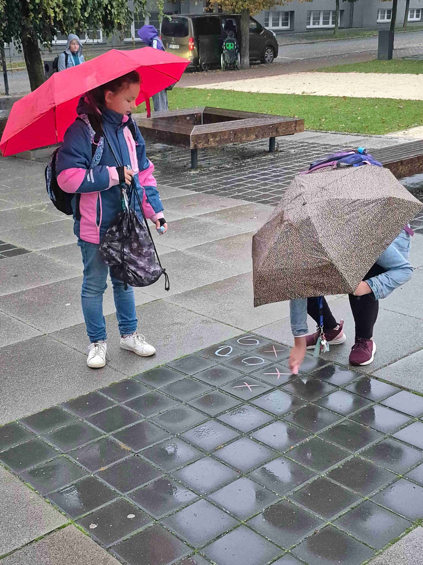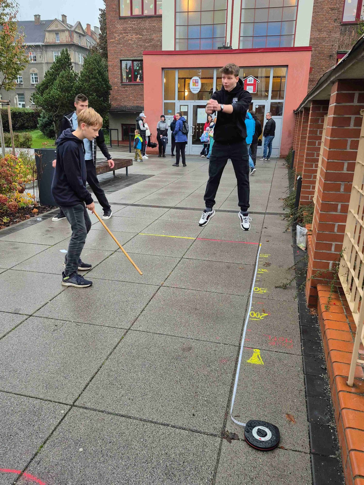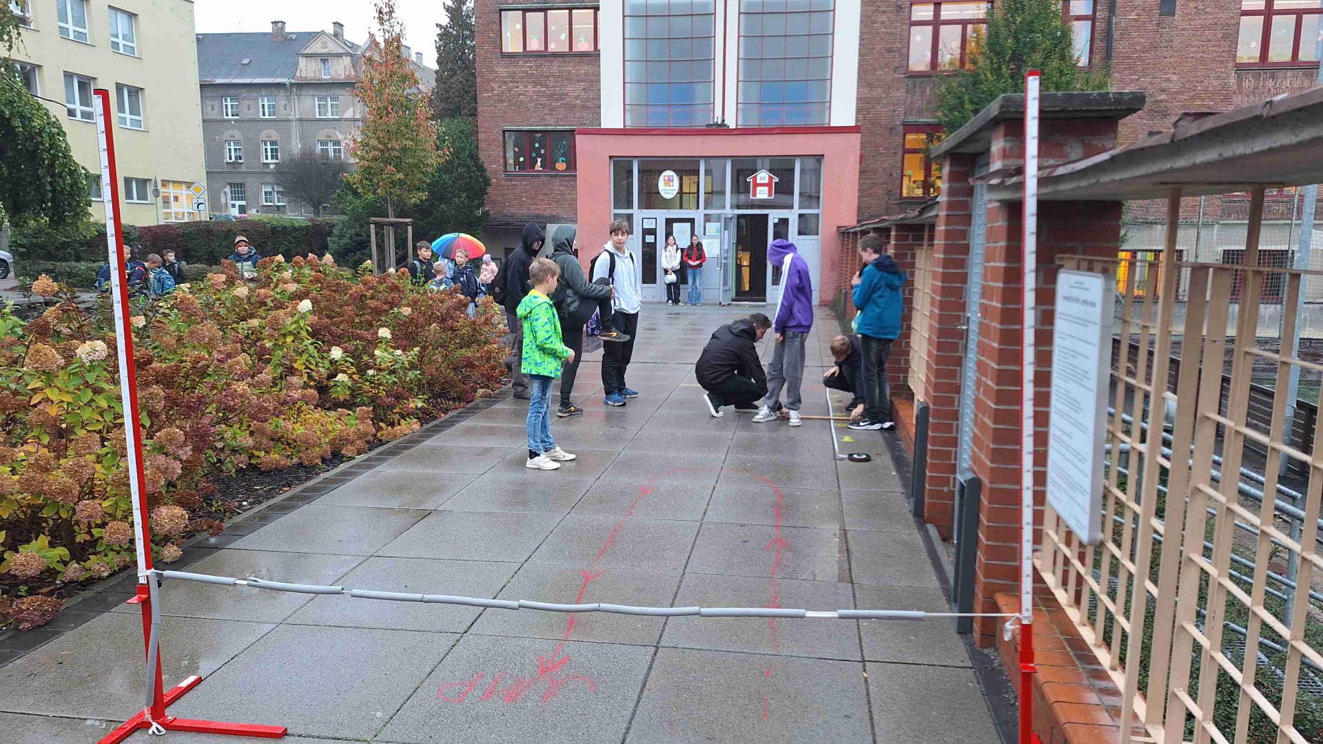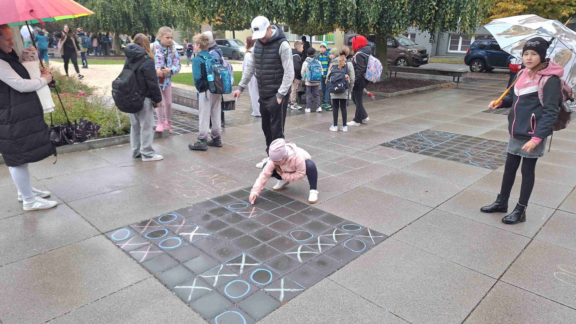 Dnes nám opět počasí příliš nepřálo, ale od naší akce PĚŠKY DO ŠKOLY nás to neodradilo. S dešníky i bez – jsme si dnešní ráno před školou pořádně užili. Zahráli jsme si i plánované PIŠKVORKY, i když trochu jinak, než jsme původně plánovali. Došlo i na skákání s 8.A. V dobré náladě jsme odjeli mašinkou vstříc dalšímu školnímu dobrodružství přímo do školy.