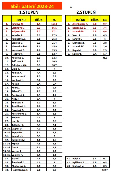Výsledky v soutěži ve sběru vysloužilých baterií 2024