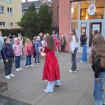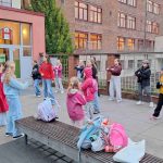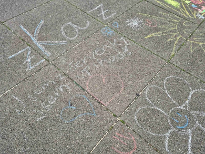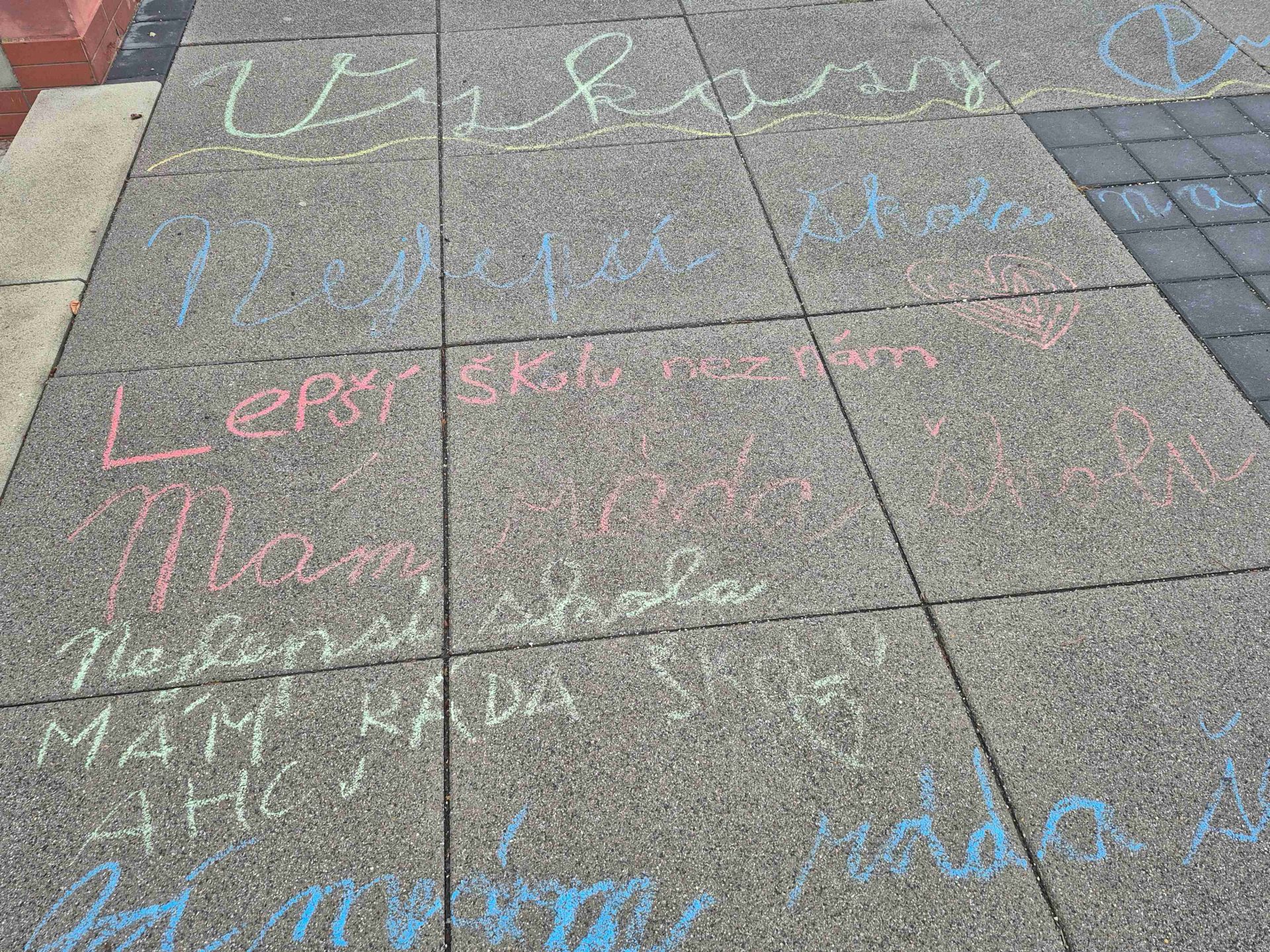 Každý, kdo chtěl, mohl na zem křídou napsat vzkaz pro „Červenku“. Všem oceněným žákům jsme předali poukazy za nejoriginálnější fotografie z instagramové soutěže, která zachycovala jejich cestu do školy.
