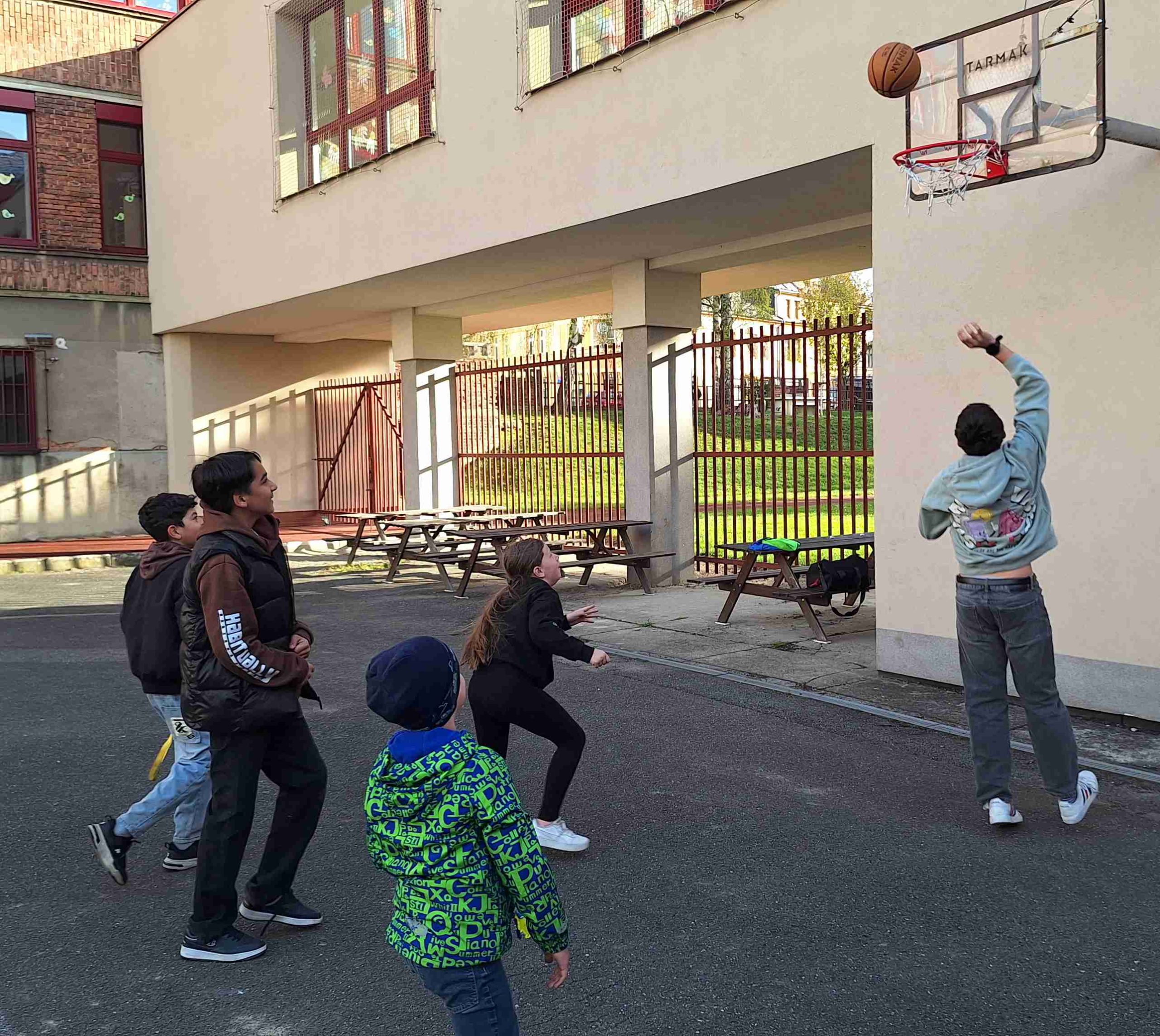 Třída 6.B vytvořila na školním hřišti i před školou několik sportovních stanovišť, kde si mohli všichni příchozí vyzkoušet své dovednosti. Velký úspěch mělo například lovení rybiček, dále si děti zahrály kuželky, nechyběl ani basketbal a fotbal. Každý si tak mohl najít aktivitu, která ho baví, a zapojit se do přátelského soutěžení.