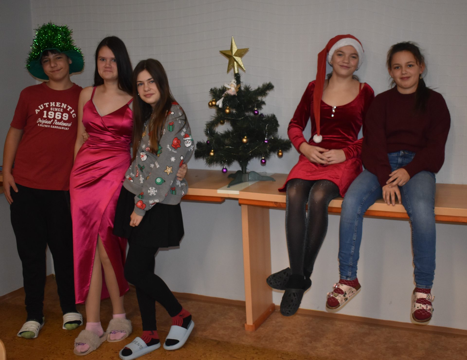 V úterý 16. 12. 2025 mohly děti přijít do školy oblečené do vánočních barev (zelená, červená, bílá) a doplnit svůj outfit vánočními doplňky.