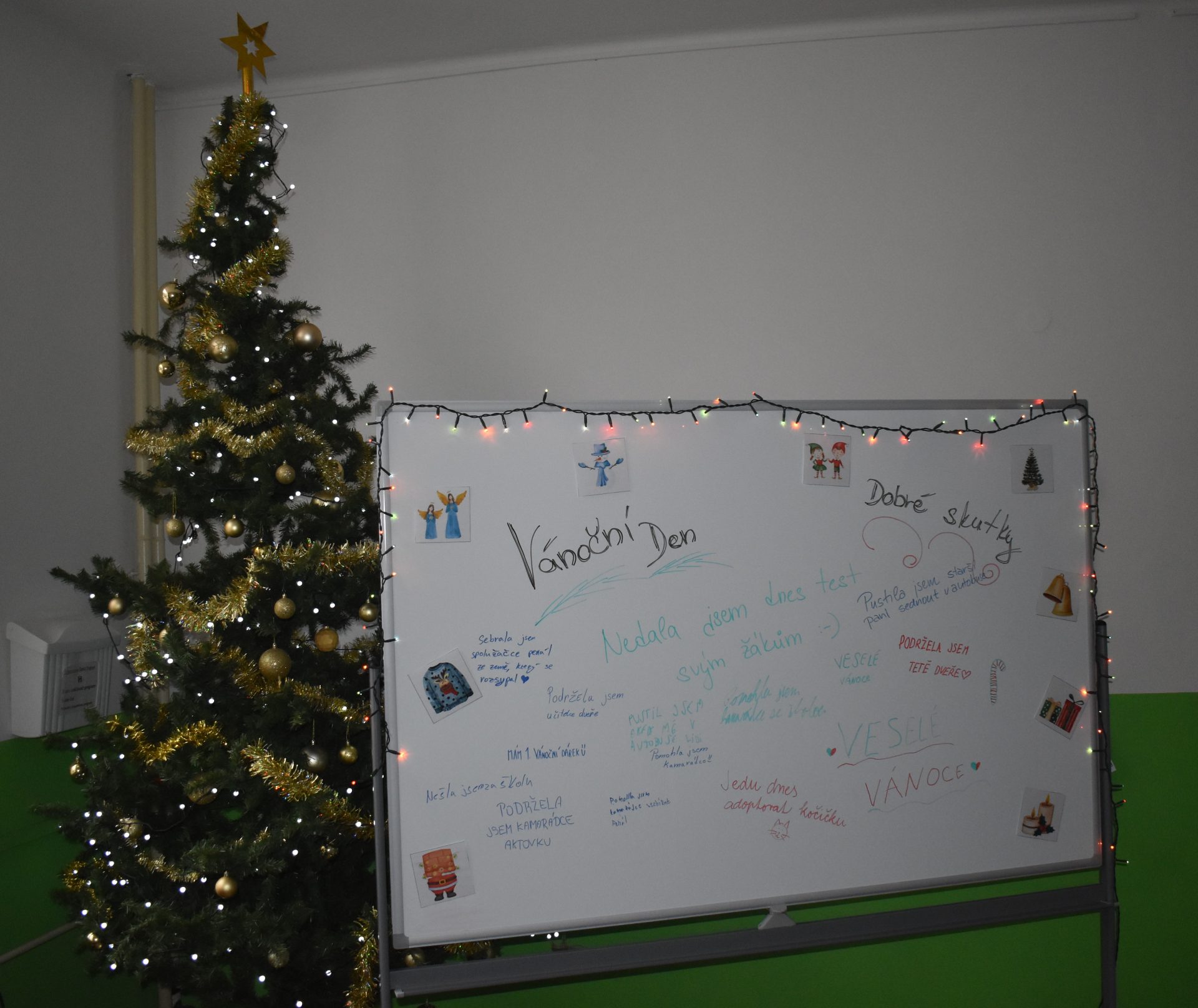 Cílem bylo společně si užít předvánoční atmosféru, rozdávat úsměvy a šířit dobrou náladu. Jednou z důležitých součástí tohoto dne bylo i konání dobrých skutků, které děti zapsaly na tabuli v přízemí 2. stupně.
